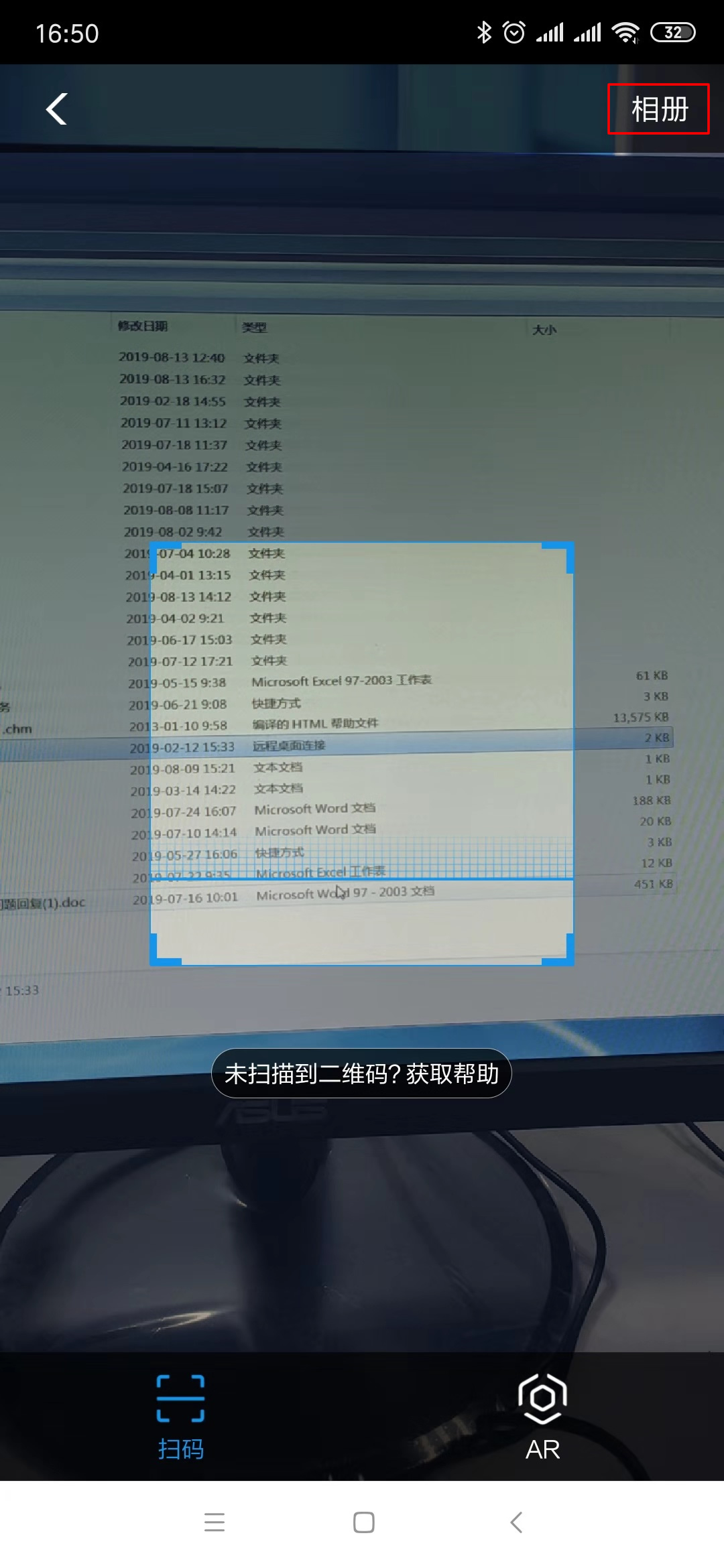 4. 使用“扫一扫”,点击右上角的相册,选择截屏保存的二维码