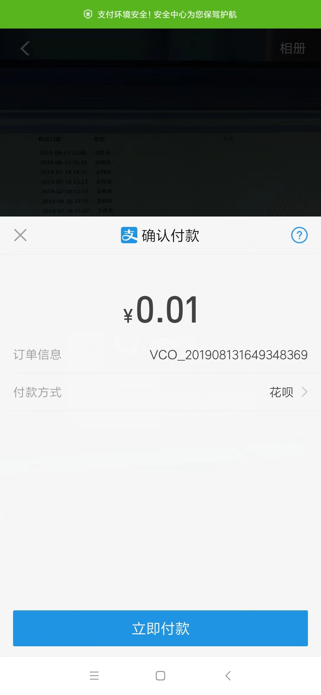 2. 在支付宝支付页面点击手机的截屏保存支付二维码