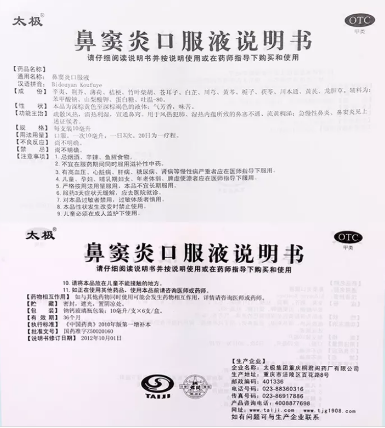 商品名称: 鼻窦炎口服液 批准文号: 国药准字Z50020160